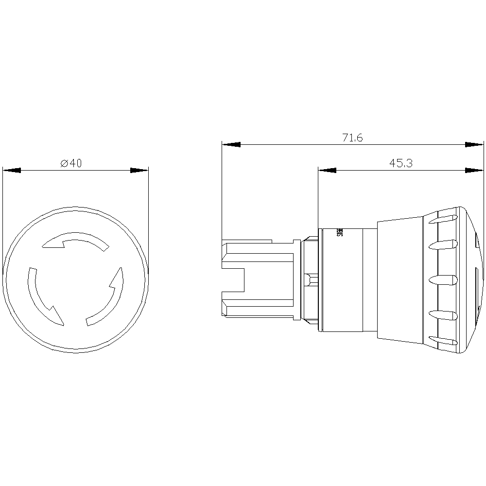 SIEMENS - SIE3SU10001HB100AA0 PULS. FUNGO NERO ROTAZIONE 40MM - 3SU10001HB100AA0