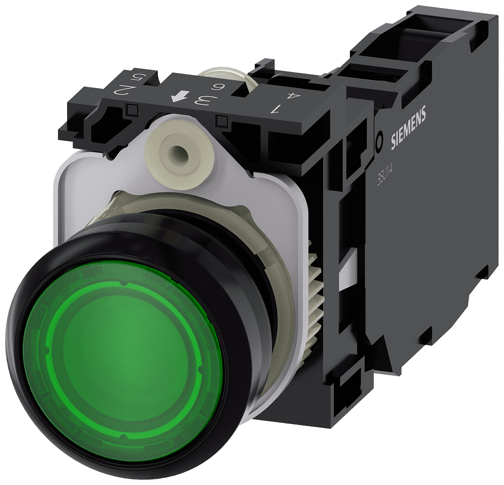SIEMENS - SIE3SU11020AB401FA0 PULS.LUM.MOMENT.PLAST.VER 1NO+1NC 24V VI - 3SU11020AB401FA0