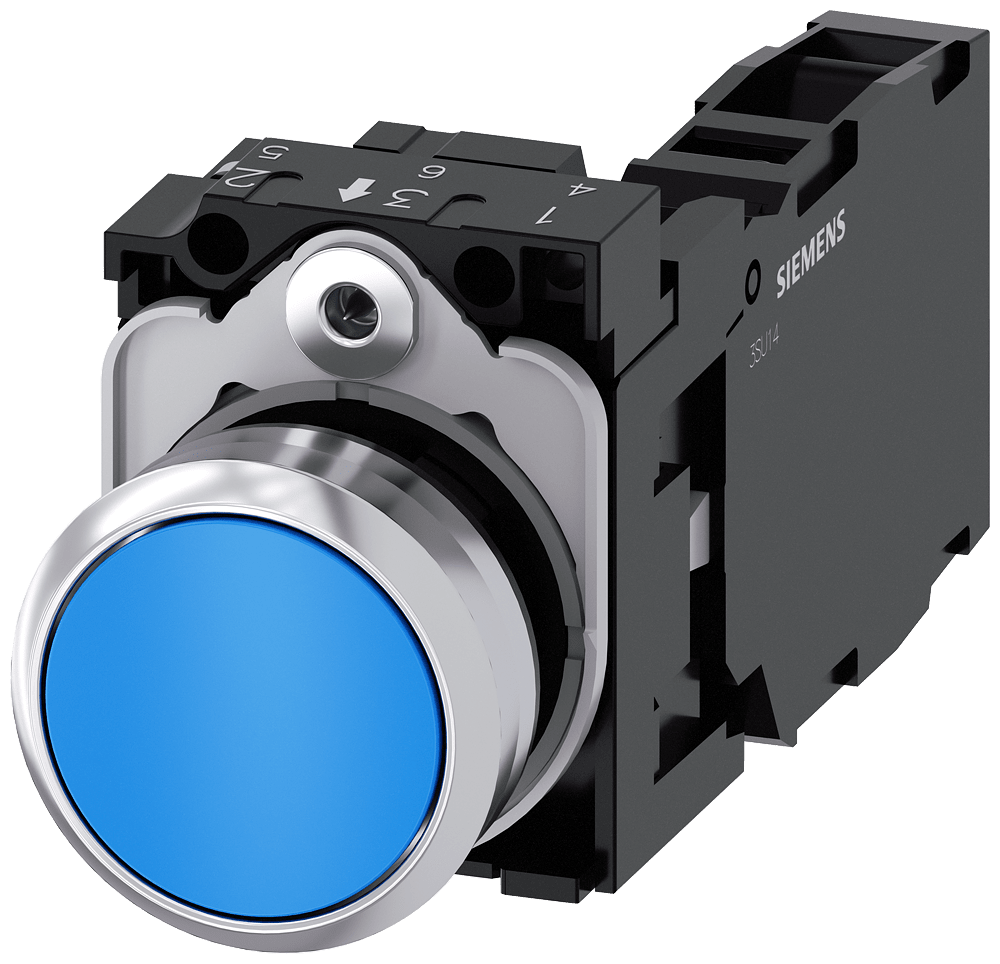 SIEMENS - SIE3SU11500AB501FA0 PULS.PIATTO MOMENT.MET.BLU 1NO+1NC VITE - 3SU11500AB501FA0