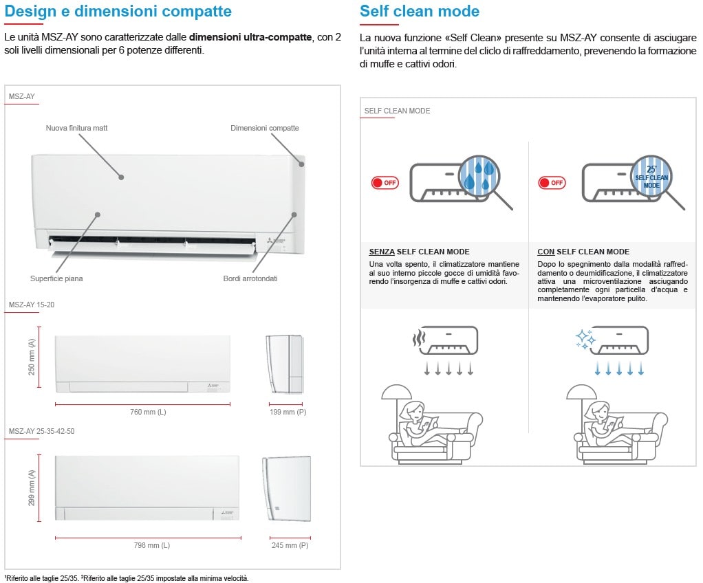Gas refrigerante R32 a basso impatto ambientale Finitura Matt e design elegante Elevata efficienza energetica stagionale Timer settimanale Tecnologia Dual Barrier Coating Self Clean Mode per una migliore qualità dell'aria Controllo Wi-Fi MELCloud integrato