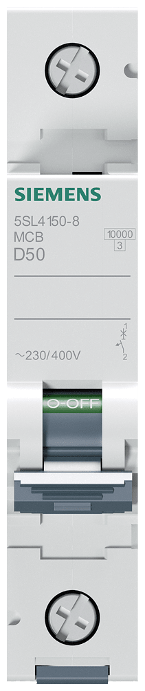 interruttore magnetotermico 230/400 V 10 kA, a 1 polo, D, 50A Interruttore magnetotermico SENTRON per la protezione da cortocircuito e sovraccarico sicura per applicazioni standard in edifici residenziali e funzionali. Montaggio e smontaggio dellapparecchio senza attrezzi. Semplice cablaggio dellalimentazione mediante la sbarra collettrice posteriore. Gli interruttori magnetotermici 5SL sono disponibili in esecuzione a 1, 2, 3, 4 poli nonché a 1 polo +N e a 3 poli +N nonché in ulteriori tipi speciali. I numerosi accessori, come ad es. i blocchetti di contatti ausiliari, consentono una varietà di ampliamenti funzionali. Semplicemente sicuri con gli apparecchi di protezione di SENTRON.