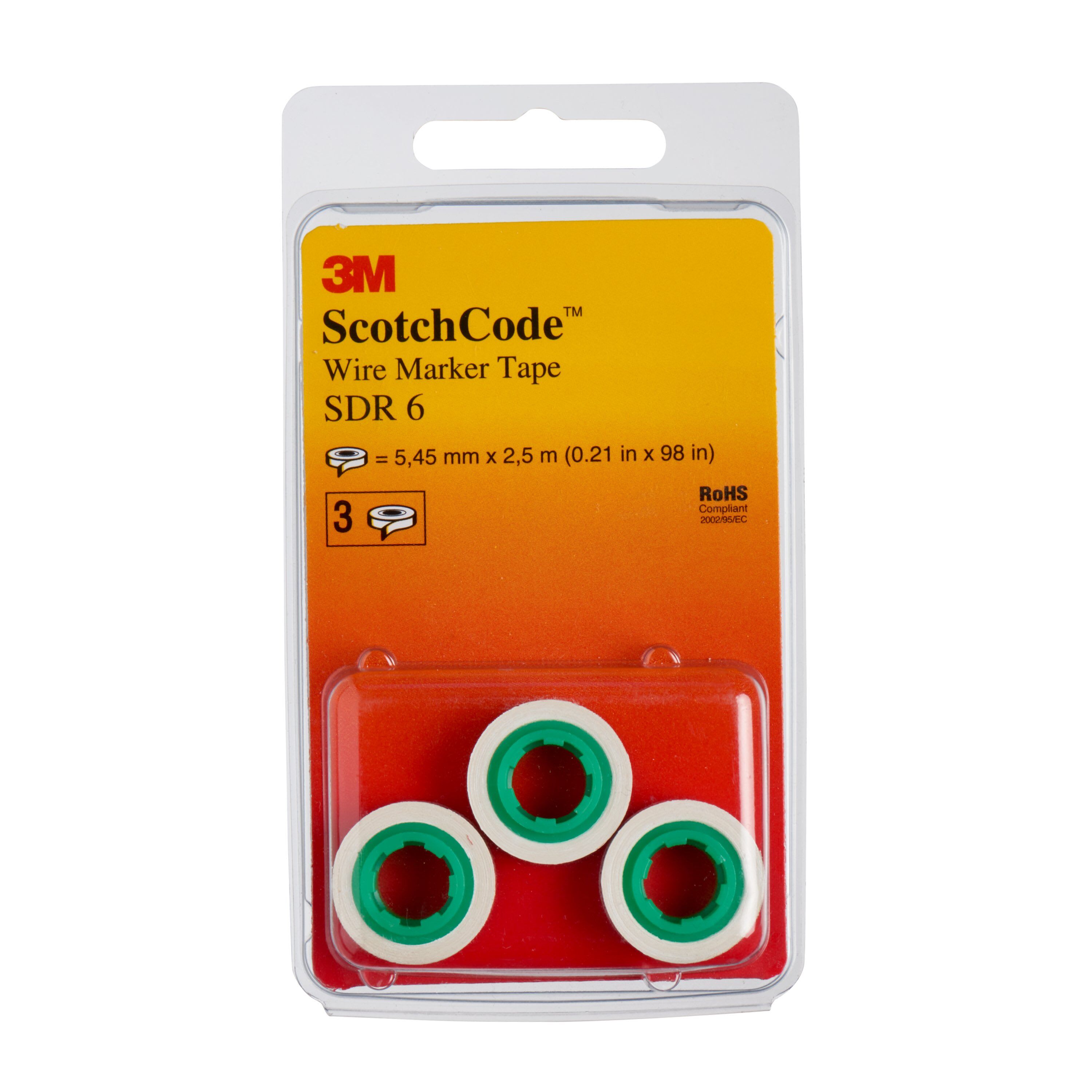 Nastri di ricambio 3M™ ScotchCode™ SDR_numero 6 A completamento dell'erogatore di nastro 3M™ Scotchcode™, il ricambio 3M™ Scotchcode™ (lettere e numeri) usa un sistema di adesione aggressivo. Con un supporto in pellicola di poliestere flessibile, il ricambio 3M™ Scotchcode™ (lettere e numeri) offre un nastro sottile e conformabile di estrema durata. La superficie liscia di questo nastro consente di rimuovere facilmente lo sporco, permettendo la leggibilità del testo anche dopo una lunga esposizione a un accumulo di contaminanti.