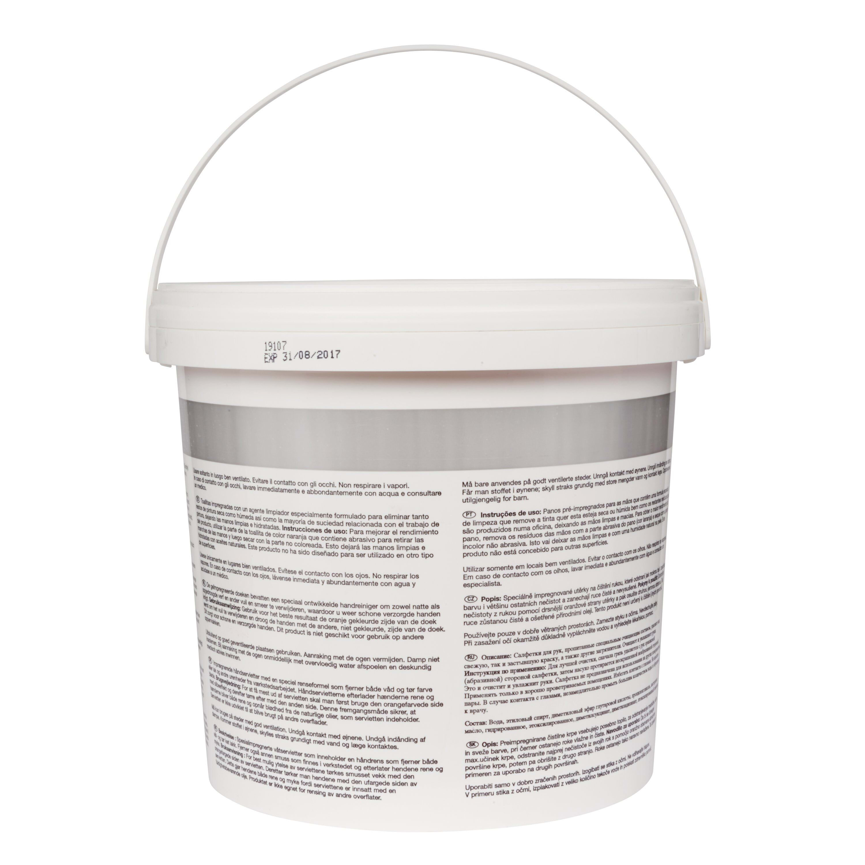 3M™ Panni lavamani imbevuti di detergente. Dimensione 27cm x 28cm, PN 80347 Progettati per gli operatori delle carrozzerie, i panni lavamani 3M™ sono venduti in confezioni posizionabili ovunque all'interno dell'area di lavoro e offrono un modo veloce e pratico per pulirsi le mani. La speciale trama dei panni, imbevuta di sostanze detergenti, aiuta a eliminare efficacemente dalle mani la maggior parte di vernici secche e fresche, grasso, sigillanti, adesivi e olii. I panni contengono anche una sostanza nutriente che aiuta a proteggere la pelle.