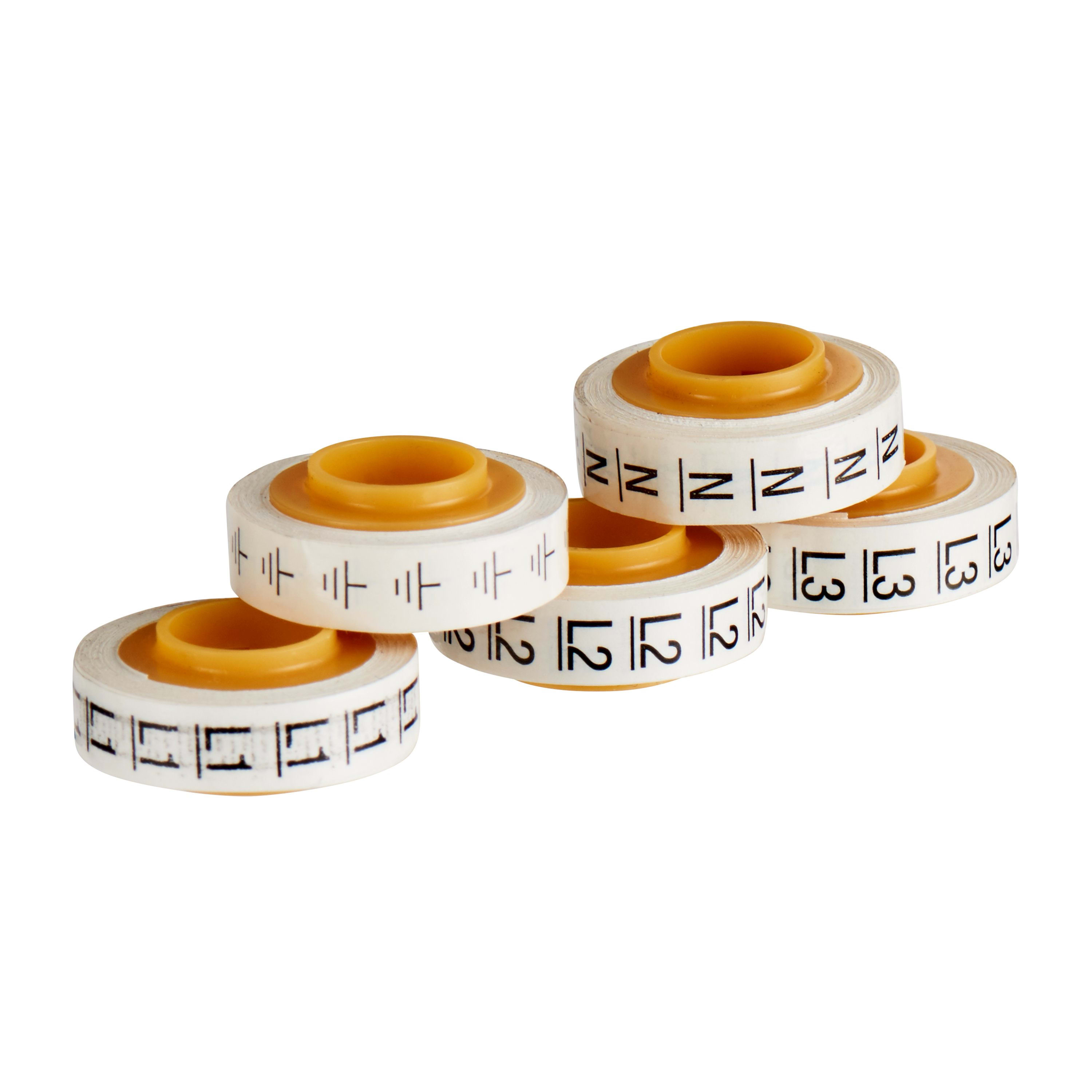 Nastri di ricambio 3M™ ScotchCode™ SDR_SIMBOLI L1, L2, L3, N, Terra A completamento dell'erogatore di nastro 3M™ Scotchcode™, il ricambio 3M™ Scotchcode™ (lettere e numeri) usa un sistema di adesione aggressivo. Con un supporto in pellicola di poliestereflessibile, il ricambio 3M™ Scotchcode™ (lettere e numeri) offre un nastro sottile e conformabile di estrema durata. La superficie liscia di questo nastro consente di rimuovere facilmente lo sporco, permettendo la leggibilità del testo anche dopo una lunga esposizione a un accumulo di contaminanti.