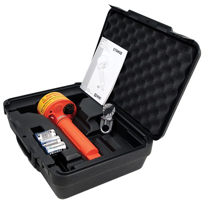 Il modello 275HVD è progettato per rilevare la presenza di alta tensione senza contatto fisico. Un selettore rotativo a 8 posizioni seleziona il campo di rilevamento. Quando il sensore viene avvicinato al conduttore sotto tensione, la sua testina capta il campo elettrico irradiato. Una volta raggiunta la soglia, il cicalino suona e una spia luminosa rossa avvisa l'operatore della presenza di conduttori sotto tensione.