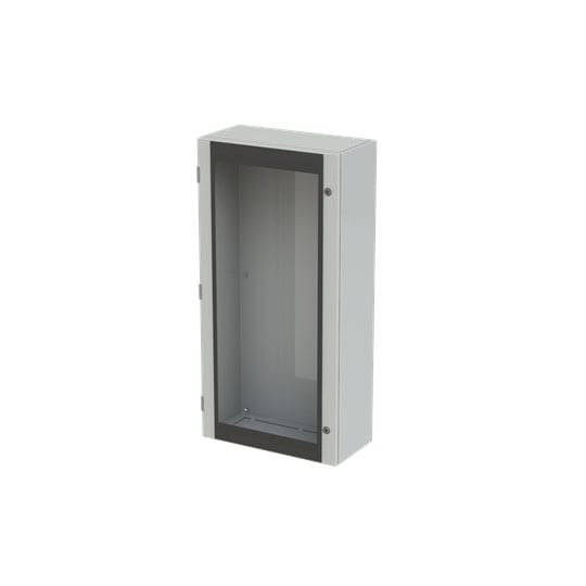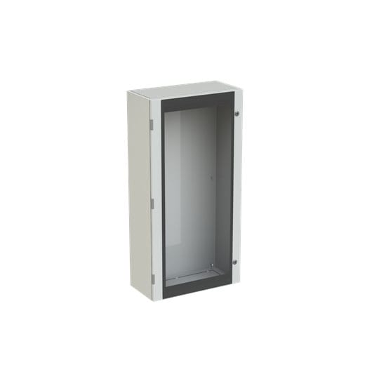 Cassa con porta in vetro senza piastra di fondo serie SR2, struttura in lamiera d'acciaio spessore 12/10. Utilizzata per la realizzazione di quadri di comando e controllo delle più varie macchine industriali: da grossi macchinari a linee automatizzate diproduzione o parti di esse, alle tipiche installazioni di quadri bordo macchina, a caldaie, impianti di riscaldamento ed altro ancora. Consente anche la realizzazione di quadri di distribuzione secondaria grazie alla possibilità di installare tutta la gamma di apparecchi e interruttori modulari su guide DIN abbinate ad appositi pannelli frontali modulari preforati e incernierati.