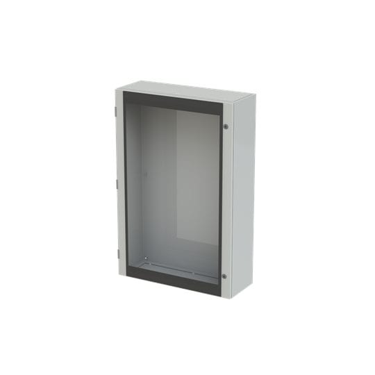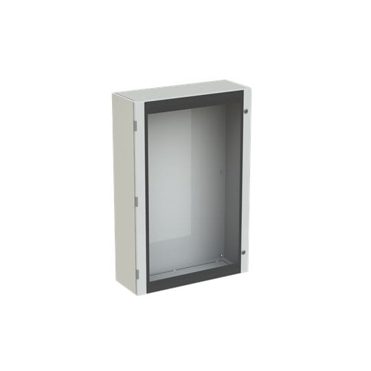 Cassa con porta in vetro senza piastra di fondo serie SR2, struttura in lamiera d'acciaio spessore 12/10. Utilizzata per la realizzazione di quadri di comando e controllo delle più varie macchine industriali: da grossi macchinari a linee automatizzate diproduzione o parti di esse, alle tipiche installazioni di quadri bordo macchina, a caldaie, impianti di riscaldamento ed altro ancora. Consente anche la realizzazione di quadri di distribuzione secondaria grazie alla possibilità di installare tutta la gamma di apparecchi e interruttori modulari su guide DIN abbinate ad appositi pannelli frontali modulari preforati e incernierati.