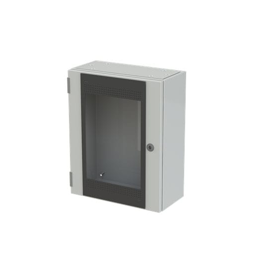 Cassa con porta in vetro senza piastra di fondo serie SR2, struttura in lamiera d'acciaio spessore 12/10. Utilizzata per la realizzazione di quadri di comando e controllo delle più varie macchine industriali: da grossi macchinari a linee automatizzate diproduzione o parti di esse, alle tipiche installazioni di quadri bordo macchina, a caldaie, impianti di riscaldamento ed altro ancora.