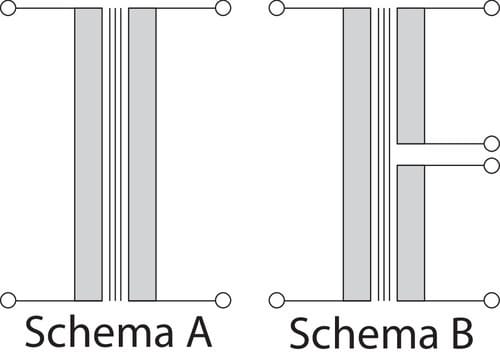 ** Utilizzo ** Adatto per montaggio a circuito stampato o a pannello ** Caratteristiche Generali ** Avvolgimenti Secondari: 12+12V Potenza: 40VA Tolleranza tensione d'ingresso: ±10% Frequenza d'ingresso: 50Hz Tolleranza tensione d'uscita: ±10% Pin PRI: 2-7 Pin SEC: 10-11 14-15 Schema: B Tipo nucleo: EI68/30 Classe di temperatura: B
