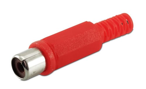 ** Caratteristiche Generali ** Genere: Presa Tipo Connettore: RCA Colore: Rosso Orientamento: Dritto Qualità: HQ Adatto per: Fam.17 ** Caratteristiche Meccaniche ** Materiale Corpo: PVC Materiale Contatto: Ottone nichelato Tipo contatto: a saldare Montaggio connettore: volante