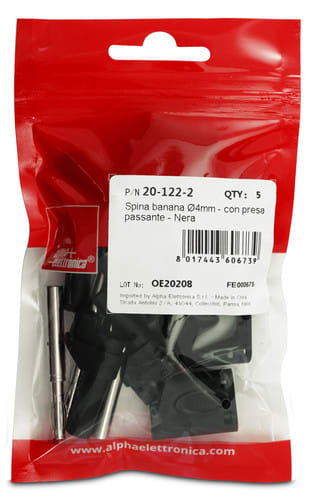 ALPHA ELETTRONICA SR - ALP20-122-2 Spina banana ø4mm di sicurezza - con presa passante - Nera