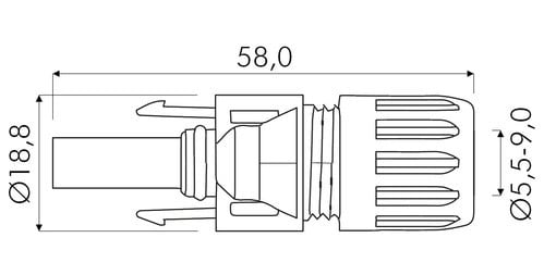 ** Caratteristiche Generali ** Genere: Presa Serie produttore: Solarline Tipo Connettore: MC4 Colore: Nero Genere Corpo: Maschio Genere Contatto: Femmina Serie Fornitore: PV-KBT4/6II-UR ** Caratteristiche Elettriche ** Corrente max: 39A Tensione max: 1000V Tensione Isolamento: 6 KV ** Caratteristiche Meccaniche ** Tipo contatto: a crimpare Terminazione: a crimpare Montaggio connettore: volante Sezione conduttori: 4-6mm² Diametro cavo min: 5.9mm Diametro cavo max: 8.8mm Grado di protezione: IP65 ** Caratteristiche Termiche ** Classe di infiammabilità: UL94V-0