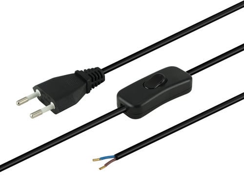 ** Caratteristiche **Colore cavo: NeroLunghezza Cavo: 2mFormazione cavo: 2 x 0.75mm²Tipo Cavo: PiattoPortata: 2.5ATensione massima: 250VNome tecnico: H03VVH2-FInterruttore: Volante** Connettore A **Tipo Connettore A: Spina 2 poli Europa Dritto** Connettore B **Tipo Connettore B: Cavo Spellato