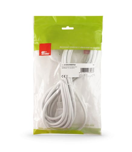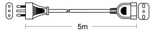 ** Caratteristiche **Colore cavo: BiancoLunghezza Cavo: 5mFormazione cavo: 3 x 1mm²Tipo Cavo: TondoPortata: 16ATensione massima: 250VNome tecnico: H05VV-F** Connettore A **Tipo Connettore A: Spina Italia 16A** Connettore B **Tipo Connettore B: Presa Bipasso Dritto