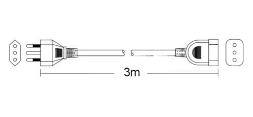 ** Caratteristiche **Colore cavo: NeroLunghezza Cavo: 3mFormazione cavo: 3 x 0.75mm²Tipo Cavo: TondoPortata: 10ATensione massima: 250VNome tecnico: H05W-F** Connettore A **Tipo Connettore A: Spina Italia 10A Dritto** Connettore B **Tipo Connettore B: Presa Italia 10A Dritto