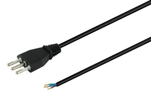 ** Caratteristiche ** Colore cavo: Nero Lunghezza Cavo: 1.5m Formazione cavo: 3 x 0.75mm² Tipo Cavo: Tondo Portata: 10A Tensione massima: 250V Nome tecnico: H05W-F ** Connettore A ** Tipo Connettore A: Spina Italia 10A Dritto ** Connettore B ** Tipo Connettore B: Cavo Spellato