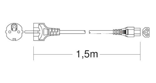 ** Caratteristiche **Colore cavo: NeroLunghezza Cavo: 1.5mFormazione cavo: 3 x 0.75mm²Tipo Cavo: TondoPortata: 2.5ATensione massima: 250VNome tecnico: H05W-F** Connettore A **Tipo Connettore A: Spina Schuko Dritto** Connettore B **Tipo Connettore B: Spina IEC320 C5 Dritto