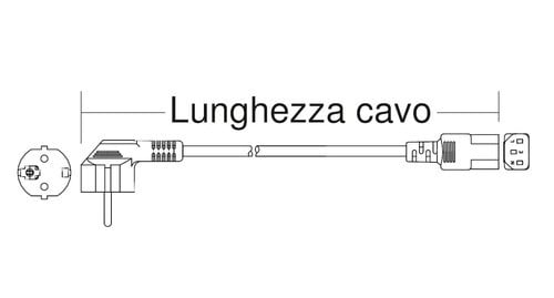 ** Caratteristiche **Colore cavo: NeroLunghezza Cavo: 1.5mFormazione cavo: 3 x 0.75mm²Tipo Cavo: TondoPortata: 10ATensione massima: 250VNome tecnico: H05W-F** Connettore A **Tipo Connettore A: Spina Schuko 90°** Connettore B **Tipo Connettore B: Presa IEC320 C13 Dritto
