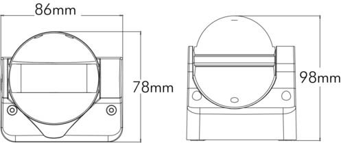 ** Caratteristiche Generali **Principio di funzionamento: InfrarossiColore: Bianco** Caratteristiche Elettriche **TipoTensione: acTens. funzionamento AC: 230VacTolleranza d'ingresso: ±10%Frequenza: 50HzConsumo energetico stand-by: 0.1WConsumo energetico operativo: 0.45WClasse Isolamento: II** Caratteristiche dei contatti **Potenza massima carico capacitivo: 600WPotenza massima carico resistivo: 1200W** Installazione **Luogo d'impiego: Esterno/InternoMontaggio: PareteAltezza d'installazione: 1.8 - 2.5mCampo di rilevamento: 180°Range max di movimento: 12m** Caratteristiche Meccaniche **Dimensioni (LxWxH): 86 x 78 x 98mmGrado di protezione: IP44** Regolazioni **Periodo di accensione: 10s - 15minLivello di luminosità: 3 - 2000lux** Caratteristiche Termiche **Temp. di funzionamento: -10 / 40°C** Note **Il sensore di movimento è idoneo ad essere installato anche all'esterno in posizione riparata da pioggia e neve dirette.