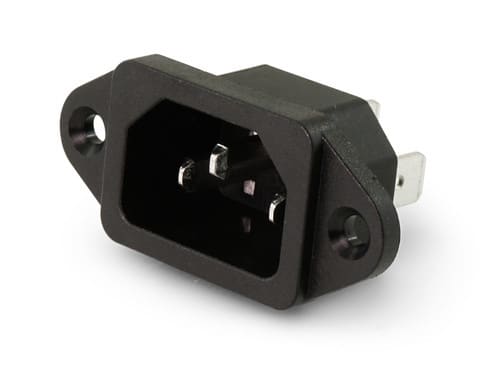 ** Caratteristiche Generali **Genere: SpinaNorma di riferimento: EN 60320Foglio tecnico: C14Colore: Nero** Caratteristiche Elettriche **Corrente max: 10ATensione max: 250V** Caratteristiche Meccaniche **Materiale Corpo: Termoplastico rinforzato con fibra di vetroMateriale Contatto: Lega di rameTipo contatto: faston 4.8mmMontaggio connettore: pannelloForo fissaggio: 26.9mm x 19.2mm** Caratteristiche Termiche **Temperatura di lavoro: 0/70°C