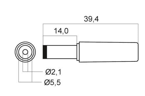 ** Caratteristiche Generali **Genere: SpinaColore: NeroOrientamento: Dritto** Caratteristiche Meccaniche **Materiale Corpo: PVCMateriale Contatto: Ottone nichelatoTipo contatto: a saldareMontaggio connettore: volanteDiametro Esterno: 5.5mmDiametro Interno: 2.1mmLunghezza Contatto: 14mm