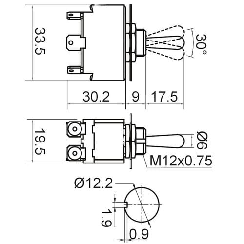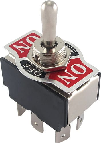 ** Caratteristiche Generali **Attuatore: LevettaSerigrafia: ON/OFF/ONMateriale attuatore: Ottone nichelatoTipi contatti: DPCOPortata: 10A@250Vac, 15A@125VacN. poli: 2Stato dei contatti: ON/OFF/ONTipo terminale: faston 6,3N. terminali: 6Montaggio: Pannello con dadoForo fissaggio: ø12.2mmTemperatura di lavoro: -10 / 40°C