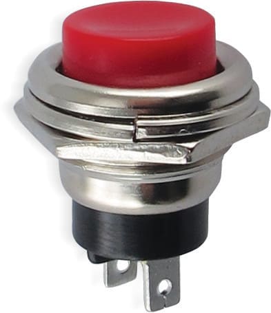 ** Caratteristiche Generali ** Attuatore: Pulsante Serigrafia: Nessuna Luminoso: no Colore: Rosso Materiale attuatore: Plastica Tipi contatti: SPST Portata: 2A@250Vac, 4A@125Vac N. poli: 1 Stato dei contatti: OFF/(ON) - N.A. Tipo terminale: a saldare N. terminali: 2 Montaggio: Pannello con dado Foro fissaggio: ø16mm