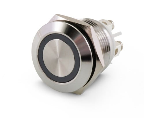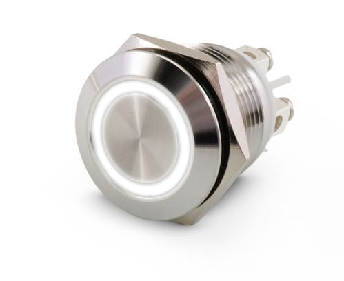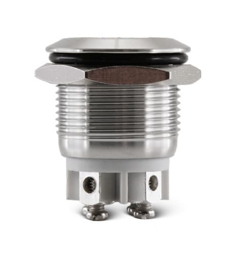 ** Caratteristiche Generali **Attuatore: Pulsante antivandaloSerie: AntivandaloForma dell'attuatore: ConvessoSerigrafia: NessunaLuminoso: siColore illuminazione: BiancoTensione illuminazione: 24Vac/dcColore: MetalloMateriale attuatore: AcciaioTipi contatti: SPSTPortata: 5A@250Vac, 5A@125VacN. poli: 1Stato dei contatti: OFF/(ON) - N.A.Tipo terminale: viteN. terminali: 4Montaggio: Pannello con dadoForo fissaggio: ø19mmGrado di protezione: IP65Temperatura di lavoro: -20 / 55°C
