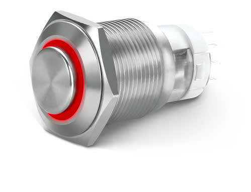 ALPHA ELETTRONICA SR - ALP330-072-B Interruttore antivandalo ø16mm bistabile luminoso Rosso - 24V - 1P - SPDT - ON/ON - 3A@250Vac - 5 term. a saldare