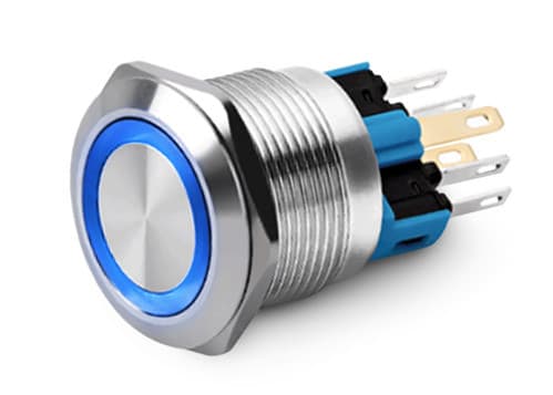 ALPHA ELETTRONICA SR - ALP330-078L-5 PULS.INT.1P ON/OFF SALD. ACCIAIO22MM BLU - 330-078L-5