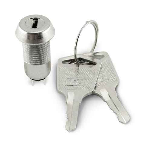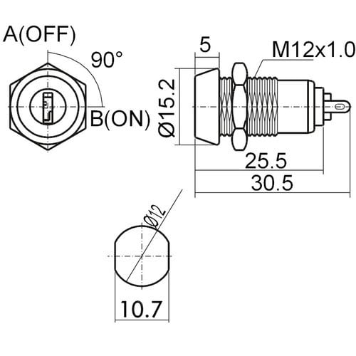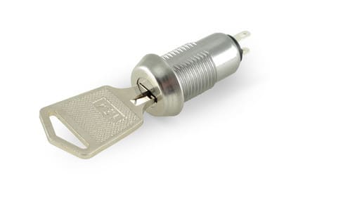 ** Caratteristiche Generali **Attuatore: ChiaveForma dell'attuatore: Rotondo, PiattoSerigrafia: NessunaLuminoso: noMateriale attuatore: Ottone nichelatoTipi contatti: SPSTN. poli: 1Stato dei contatti: ON/OFFTipo terminale: a saldareN. terminali: 2Montaggio: Pannello con dadoForo fissaggio: ø12mmDieci diverse combinazioniChiavi di ricambio non gestite