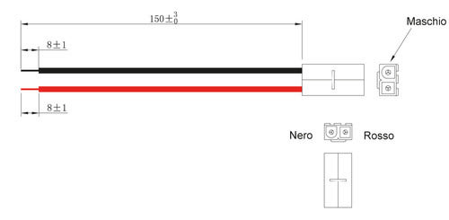 ** Caratteristiche **Lunghezza Cavo: 0.15m** Connettore A **Tipo Connettore A: Presa Tipo Tamiya MG620006** Connettore B **Tipo Connettore B: Fili liberi