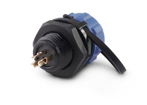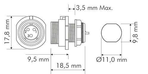 ** Caratteristiche Generali **Genere: PresaOrientamento: DrittoNr. Poli: 3Serie Fornitore: SP11** Caratteristiche Elettriche **Corrente max: 5ATensione max: 180V** Caratteristiche Meccaniche **Materiale Corpo: NylonMateriale Contatto: Lega dirame dorataTipo contatto: a saldareMontaggio connettore: pannelloSezione conduttori: 0-0.79mm²Grado di protezione: IP68** Caratteristiche Termiche **Temperatura di lavoro: -25/80°C