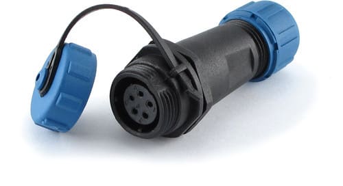 ** Caratteristiche Generali **Genere: PresaOrientamento: DrittoNr. Poli: 5Serie Fornitore: SP13** Caratteristiche Elettriche **Corrente max: 5ATensione max: 250V** Caratteristiche Meccaniche **Materiale Corpo: NylonMateriale Contatto: Lega dirame dorataTipo contatto: a saldareMontaggio connettore: volanteSezione conduttori: 0-2mm²Diametro cavo min: 4mmDiametro cavo max: 6.5mmGrado di protezione: IP68** Caratteristiche Termiche **Temperatura di lavoro: -25/80°C