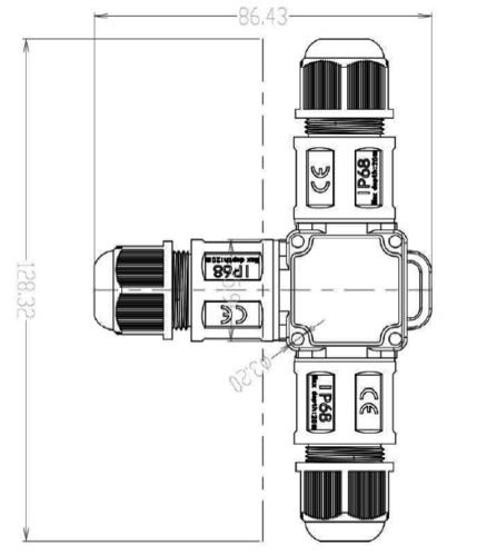 ALPHA ELETTRONICA SR - ALP44-91-T03C Connettore/giuntacavo a 3 vie "T"3Poli 24A 450V con clip - IP68 - 44-91-T03C