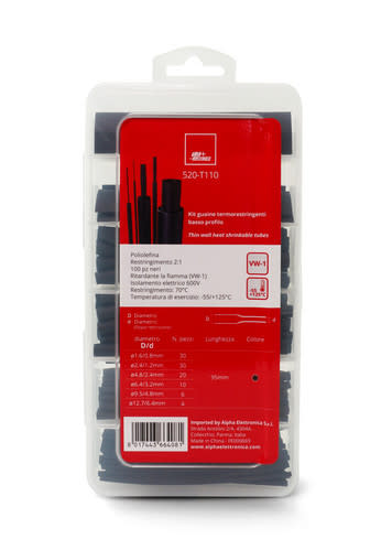 ALPHA ELETTRONICA SR - ALP520-T110 Thin wall heat shrinkable tubes in assorted kit - Polyolefin - Shrink ratio 2:1 - 100pcs - black