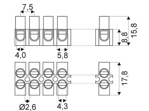 Corpo: PP, UL 94V-2Terminali a viteBarretta 12 poli separabili** Caratteristiche Generali **Genere: MorsettoOrientamento: DrittoNr. Poli: 12** Caratteristiche Elettriche **Corrente max: 24ATensione max: 450V** Caratteristiche Meccaniche **Terminazione: ad avvitareSezione conduttori: 0.5-2.5mm²