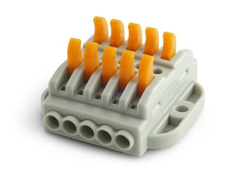 ** Caratteristiche Generali **Genere: MorsettoNr. Poli: 5** Caratteristiche Elettriche **Corrente max: 32ATensione max: 250V** Caratteristiche Meccaniche **Materiale Corpo: PoliamideMateriale Contatto: RameTipo contatto: a pressioneMontaggio connettore: volanteSezione conduttori: 0.08-4mm²