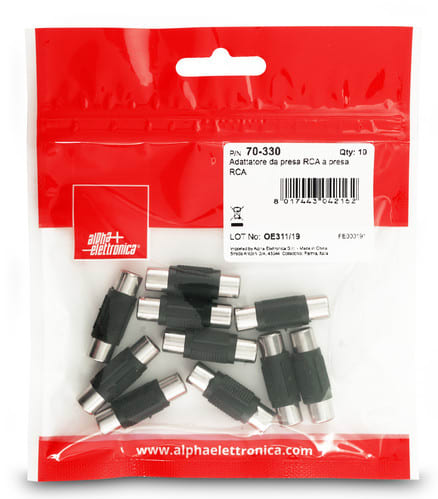 ** Caratteristiche Generali **Genere: AdattatoreOrientamento: DrittoTipo Connettore A: RCAGenere A: PresaTipo Connettore A: Presa RCATipo Connettore B: RCAGenere B: PresaTipo Connettore B: Presa RCA** Caratteristiche Elettriche **Schermatura: si** Caratteristiche Meccaniche **Materiale Corpo: PVCMateriale Contatto: Ottone nichelatoLunghezza Cavetto: 2cm