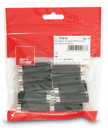 ** Caratteristiche Generali **Genere: AdattatoreOrientamento: DrittoTipo Connettore A: RCAGenere A: SpinaTipo Connettore A: Spina RCATipo Connettore B: JackGenere B: PresaTipo Connettore B: Presa Jack ø6.3mm Mono** Caratteristiche Elettriche **Schermatura: si** Caratteristiche Meccaniche **Materiale Corpo: PVCMateriale Contatto: Ottone nichelatoLunghezza Cavetto: 2cm