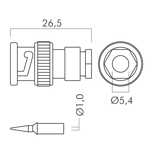 ** Caratteristiche Generali ** Genere: Spina Tipo Connettore: BNC Foglio tecnico: UG88 Orientamento: Dritto Qualità: Qualità Standard Adatto per cavo RG: RG-58/U RG58A/U RG141A/U ** Caratteristiche Elettriche ** Impedenza: 50ohm ** Caratteristiche Meccaniche ** Materiale Corpo: Ottone nichelato Tipo contatto: a saldare o crimpare Terminazione: serraggio a vite Montaggio connettore: volante