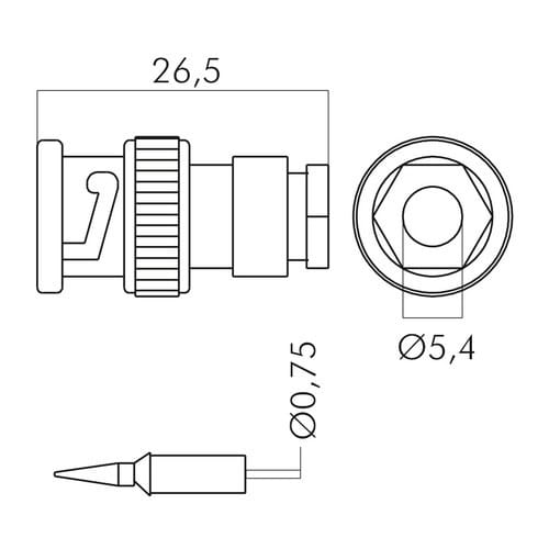 ** Caratteristiche Generali **Genere: SpinaTipo Connettore: BNCFoglio tecnico: UG88Orientamento: DrittoQualità: Qualità StandardAdatto per cavo RG: RG-59/U RG62/U RG210/U** Caratteristiche Elettriche **Impedenza: 75ohm** Caratteristiche Meccaniche **Materiale Corpo: Ottone nichelatoTipo contatto: a saldare o crimpareTerminazione: serraggio a viteMontaggio connettore: volante
