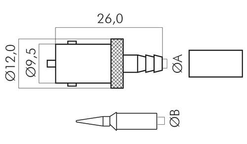 ** Caratteristiche Generali **Genere: PresaTipo Connettore: BNCFoglio tecnico: UG1794Orientamento: DrittoAdatto per cavo RG: RG-58/U RG58A/U RG141A/U** Caratteristiche Elettriche **Impedenza: 50ohm** Caratteristiche Meccaniche **Materiale Corpo: Ottone nichelatoTipo contatto: a saldare o crimpareTerminazione: a crimpareMontaggio connettore: volanteDim. A: 4.5mmDim. B: 1mm