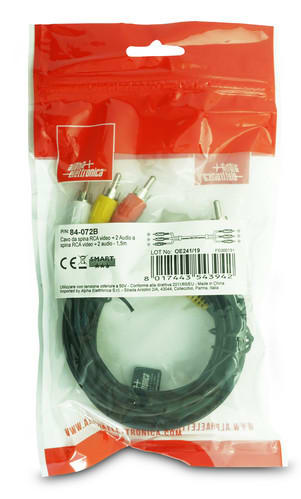 ** Caratteristiche **Colore cavo: NeroLunghezza Cavo: 1.5mTipo Cavo: Lineare, PiattinaGuaina cavo: PVCSchermatura: CalzaMateriale conduttori: Rame PuroFinitura contatto : Nichelato** Connettore A **Tipo Connettore A: Spina 2 RCA Audio e RCA video** Connettore B **Tipo Connettore B: Spina 2 RCA Audio e RCA video