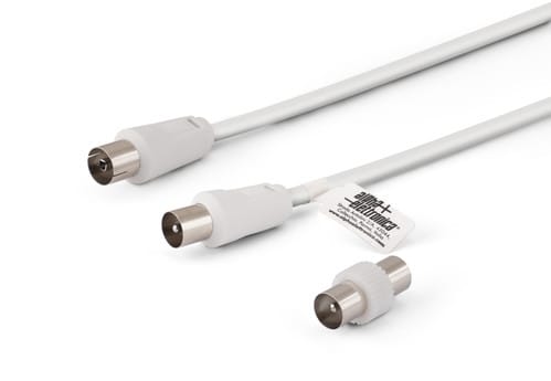 ALPHA ELETTRONICA SR - ALP87-012W/02B Coax TV plug Ø9.5mm to Coax TV socket Ø9.5mm - With adapter M / M - White - 2m