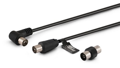 ** Caratteristiche **Colore cavo: NeroLunghezza Cavo: 2mDiametro cavo: ø5mmTipo Cavo: Lineare, TondoGuaina cavo: PVCSchermatura: Calza + foglioMateriale conduttori: Rame PuroCorpo connettori: PlasticoFinitura contatto : Nichelato** Connettore A **Tipo Connettore A: Spina TV Coax ø9.5mm** Connettore B **Tipo Connettore B: Spina TV Coax ø9.5mm 90°