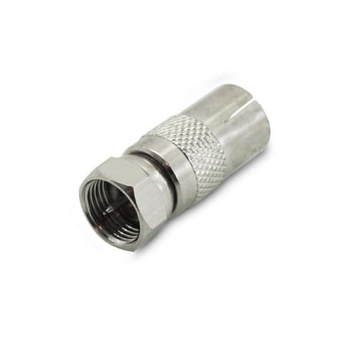 ** Caratteristiche Generali ** Genere: Adattatore Tipo Connettore A: F Genere A: Spina Tipo Connettore A: Spina F Tipo Connettore B: Coassiale TV Genere B: Presa Tipo Connettore B: Presa Coassiale TV ø9.5mm ** Caratteristiche Meccaniche ** Materiale Corpo: Ottone nichelato Materiale Isolamento: Delrin