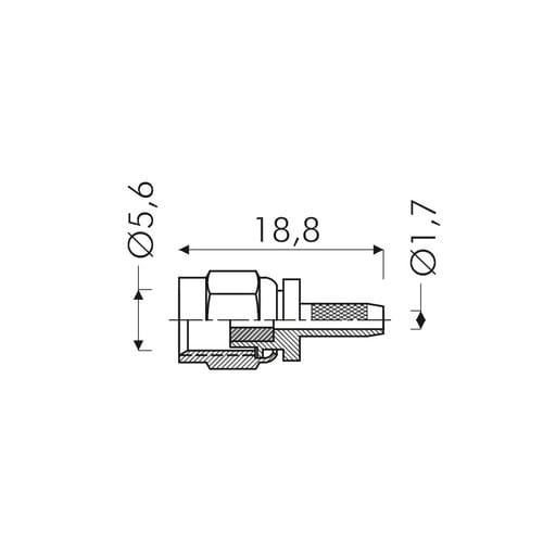 ** Caratteristiche Generali **Genere: SpinaTipo Connettore: SMAAdatto per: RG174 RG316** Caratteristiche Elettriche **Impedenza: 50ohm** Caratteristiche Meccaniche **Materiale Corpo: Ottone placcato oroMateriale Isolamento: PPTipo contatto: a crimpareTerminazione: a crimpare
