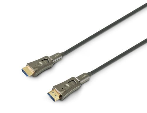 Cavo HDMI 2.0 AOC in fibra ottica con connettori HDMI2.0 A 19-pin / HDMI A 19-pin con interfaccia Micro HDMI. I connettori HDMI removibili consentono al cavo di essere facilmente installato anche in spazi ristretti. ** Caratteristiche ** Interfaccia: HDMI® Tipologia: HDMI® High Speed with Ethernet Risoluzione massima: 2160p (4K@60fps) Standard supportati: ARC, CEC, HDR Profondità colore: 16 bit/canale Compatibile 3D: si Versione HDCP: 2.2 Velocità: 18Gbps Colore cavo: Grigio Lunghezza Cavo: 10m Diametro cavo: ø5mm Tipo Cavo: Fibra ottica Applicazione CPR: Posa mobile Tecnologia: Attivo Guaina cavo: PVC Corpo connettori: Metallico Finitura contatto : Dorato ** Connettore A ** Tipo Connettore A: Spina HDMI® 19 poli Dritto ** Connettore B ** Tipo Connettore B: Spina HDMI® 19 poli Dritto Attenzione: verso di collegamento indicato sul connettore.