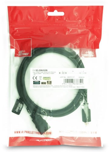 ** Caratteristiche **Interfaccia: HDMI®Tipologia: HDMI® High Speed with EthernetRisoluzione massima: 2160p (4K@30fps)Standard supportati: ARC, CECCompatibile 3D: siVelocità: 10GbpsColore cavo: NeroLunghezza Cavo: 2mDiametro cavo: ø4.5mmTipo Cavo: LineareApplicazione CPR: Posa mobileTecnologia: PassivoGuaina cavo: PVCSchermatura: Calza + foglioMateriale conduttori: Rame PuroSezione conduttori: 32AWGCorpo connettori: PlasticoFinitura contatto : Dorato** Connettore A **Tipo Connettore A: Spina HDMI® 19 poli Dritto** Connettore B **Tipo Connettore B: Spina Micro HDMI® 19 poli Dritto